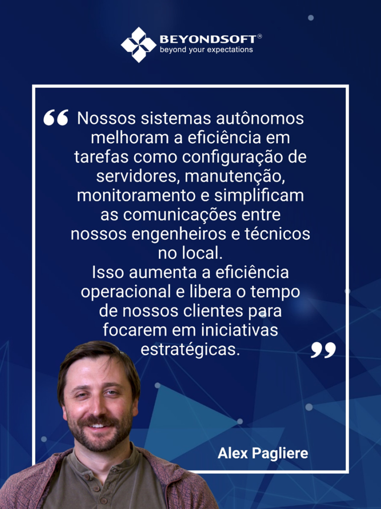 Nós temos uma equipe focada em automa??o de data centers e opera??es robóticas. Movimenta??o de racks, reparos em servidores e manuten??o de rede s?o tradicionalmente trabalhos intensivos e demorados. No entanto, com a introdu??o de rob?s e processos automatizados, ajudamos nossos clientes a simplificar essas tarefas. Com a automa??o, nossos clientes reduzem a complexidade de gerenciar sua infraestrutura em grande escala, minimizando erros e interrup??es.
